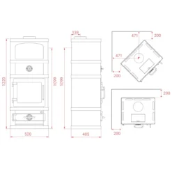 - Abstand von Mitte des Rauchstutzens bis zur Hinterkante des Ofens: 26 cm;